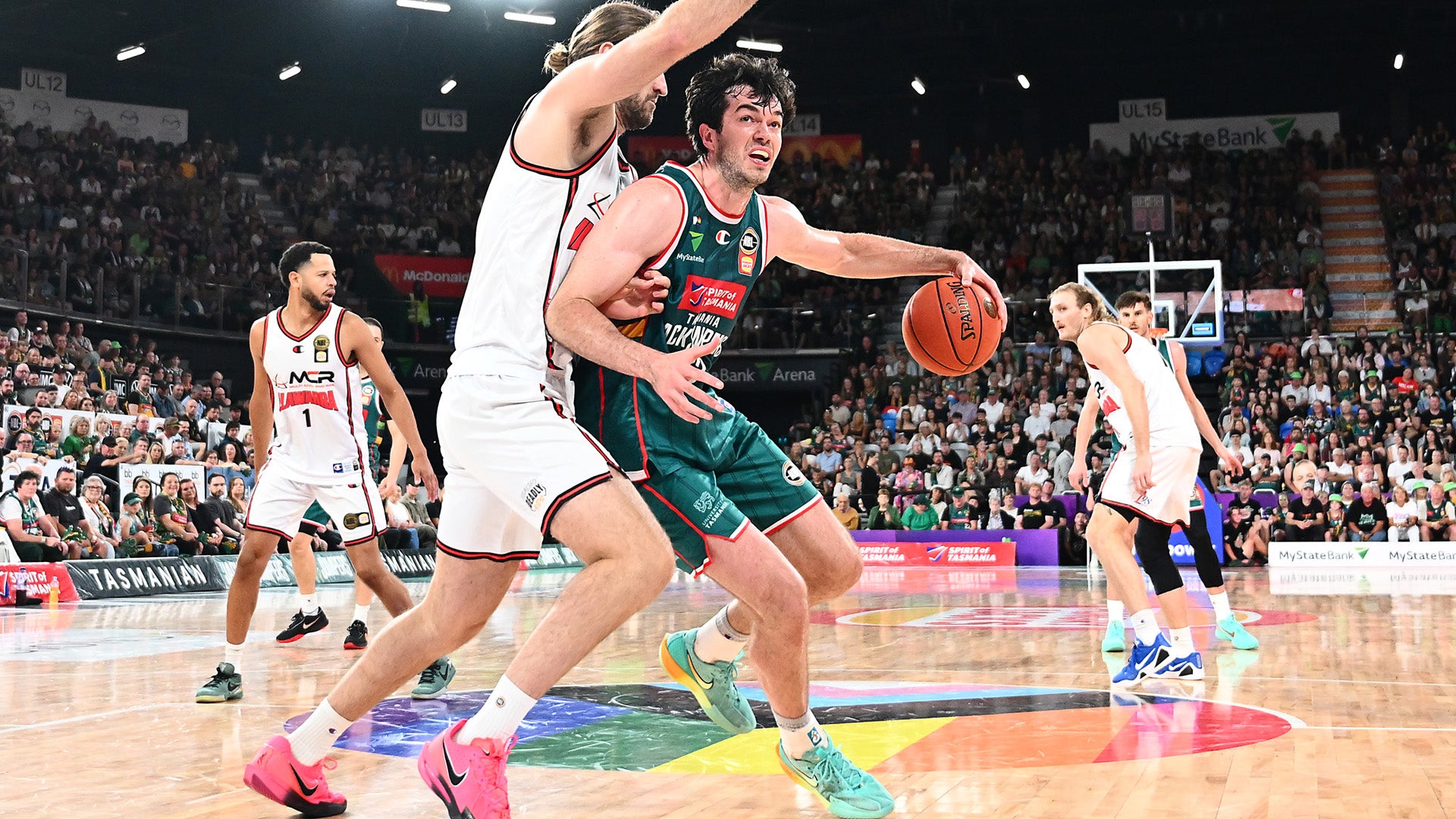 David Johnson opened the scoring for Tasmania before Josh Bannan knocked down a three ball, and then Archie Woodhill mopped up a missed free-throw from Nick Marshall to score.